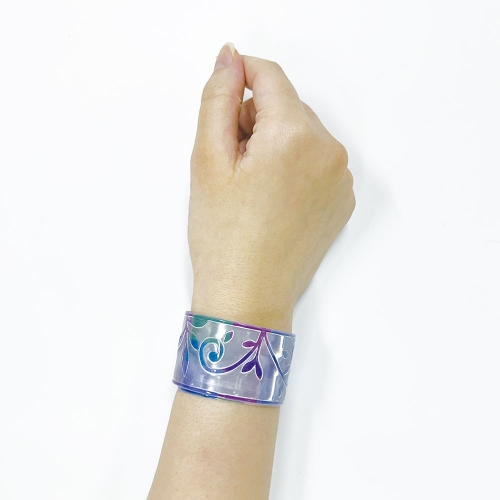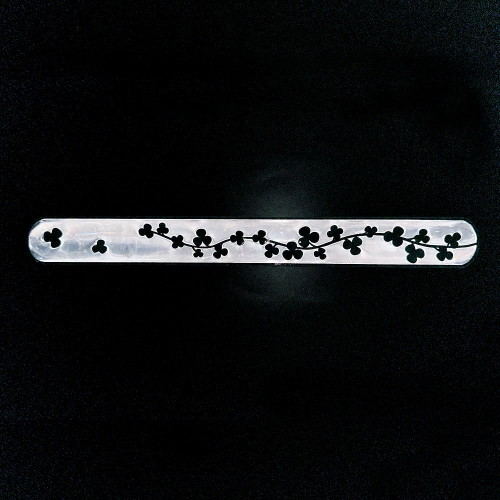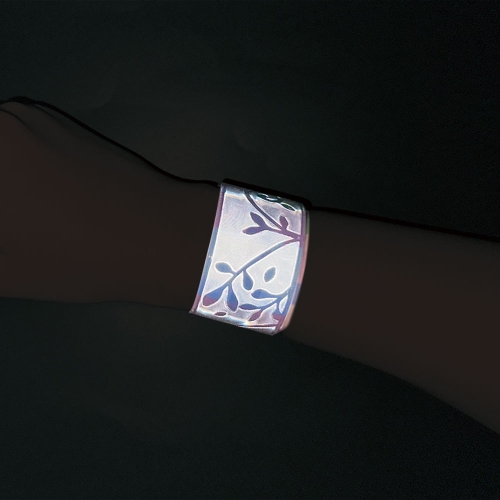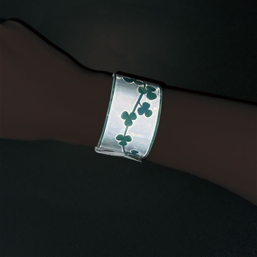 暗いところでライトが当たると反射して光ります 丸めても中の模様がきれいに見えます 昼はさりげないファッション小物として、夜は安心の反射アイテムとして デザインはカラフルなツタと、シックなクローバーの2種類 ※2柄アソート販売です(1本の価格)