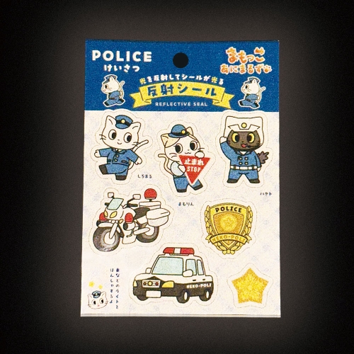子どもに人気の警察官とパトカー・白バイのシールです ランドセルカバーや傘の持ち手につけるのもおすすめ! 夜道でしっかり反射します